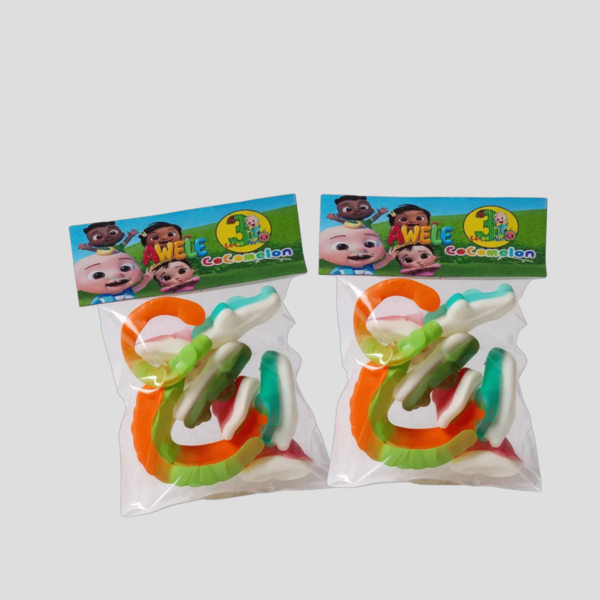 Personalised Themed Gummies for Any theme/Event. At checkout you will be able to fill in Theme/Event, Age and Name of Child on the Special Instruction Column.